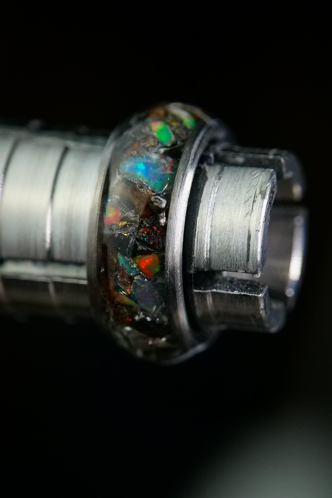 Opal has been another staple for us at Patrick Adair Designs. We originally started incorporating crushed opal in the inlay of our Glowstone rings. Opal is incredibly flashy and we love how opal can look different based on the lighting and angle. This is even more apparent with our relatively new Obsidian Opal Series. The opal we use in our Halo Ring is even more unique in its colors and rarity.