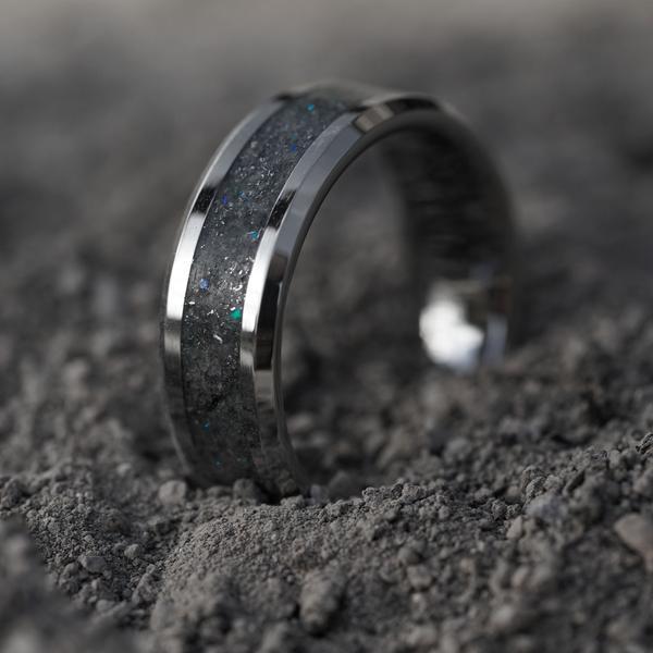 Since moonstone has such a unique color, its transparency allows it to blend/match with pretty much anything, making it extremely versatile in jewelry. Our favorite use of moonstone is with our Best Seller, the Star Dust™Ring. The Star Dust™ Ring incorporates a variety of materials including crushed moonstone. Accenting the moonstone is a base of meteorite shavings, crushed diamonds, and blue opal. This is all done on a dark charcoal background which really lets the moonstone shine. The Star Dust™ Ring was made to look like it was crafted from the debris of a massive cosmic explosion and moonstone fits this theme perfectly.