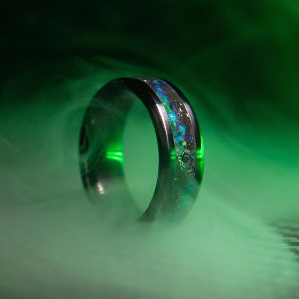 Cool color enthusiasts don't need to fret- the Area 51 ring was made just for them. Made with crushed opal, meteorite shavings, and bright green glow crystals, this ring is
