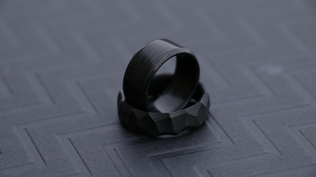 Carbon fiber is one of the most interesting materials used in men's rings and makes for a great unique wedding band. Carbon fiber has many real world applications, like being used for jet turbines. It's extremely versatile due to its immense strength, durability, and lightweight properties. These properties also make it a great option for a wedding band or engagement ring! If you life an active lifestyle or work with your hands a lot, you can't go wrong with carbon fiber! Even if you are dead set on a gold band, you can always get a carbon fiber band as backup to wear while doing extraneous activities!