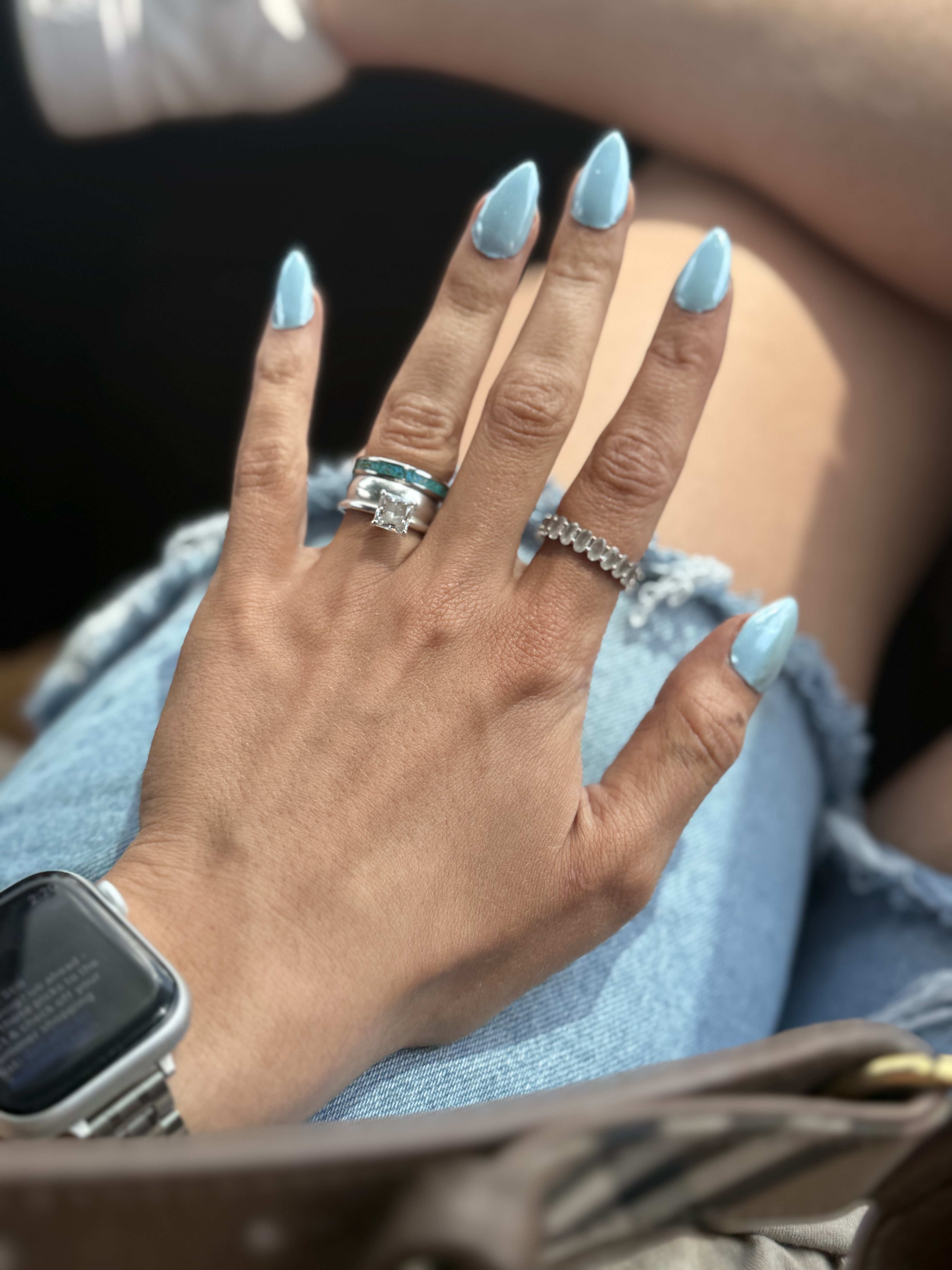 I chose a ring for each chapter of my life. One for my birth stone, my wedding day, and one for the birth of my son. Now every time I look down, I see my journey in colors that make me smile.