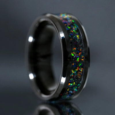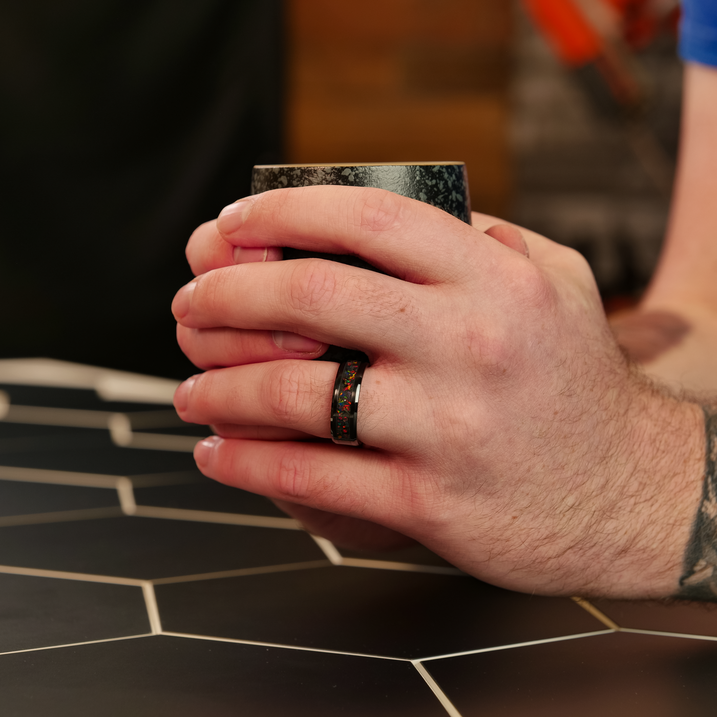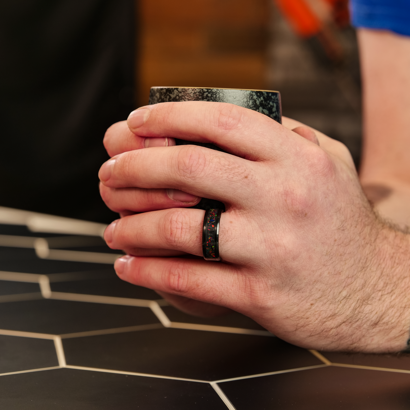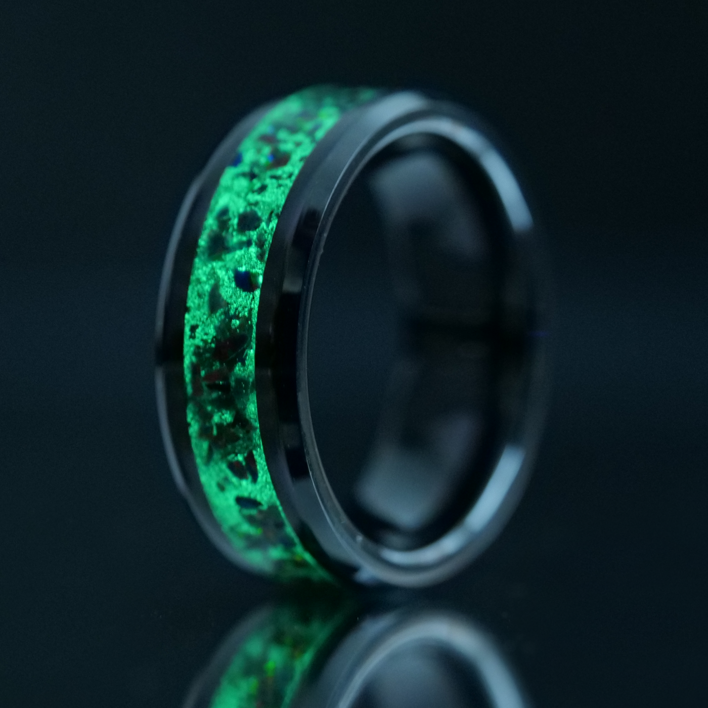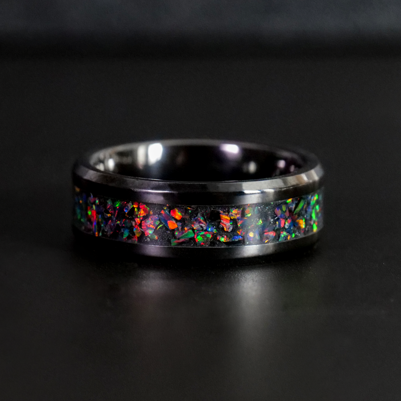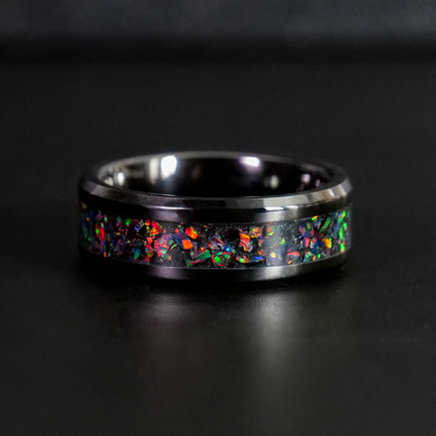 Black Fire Opal Glowstone Cremation Ring with Ashes
