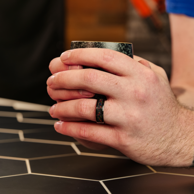 I had a hard time deciding on which width size to get, especially because most of the photos depicted the larger width, but I ultimately decided on the 6mm and I’m glad I did. The titanium works brilliantly with the choices I made in colors and I’m happy I went with that metal. It’s light and doesn’t feel like I have anything on my finger. Initially I thought that I may have forgotten to add the glowstone color, but once I realized that it needs UV light to “activate” the glow, I was pleasantly surprised by how bright it gets, even with the darker daytime colors. The personalization is beautifully engraved and is easy to read. I am also impressed with how quickly this process was. I ordered it on 12/28, and even though I needed the ring sizer and kit sent to me, I had the ring on my finger on 2/8. I’m already looking at what I want to order next.