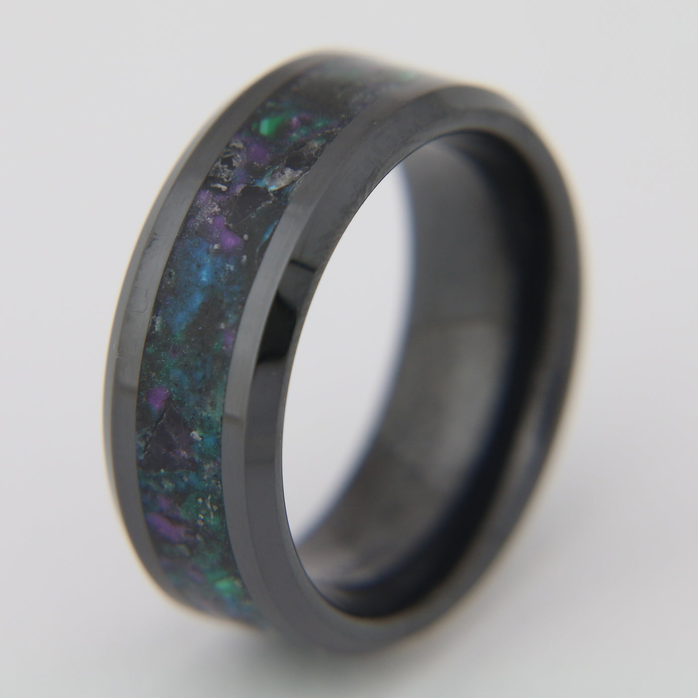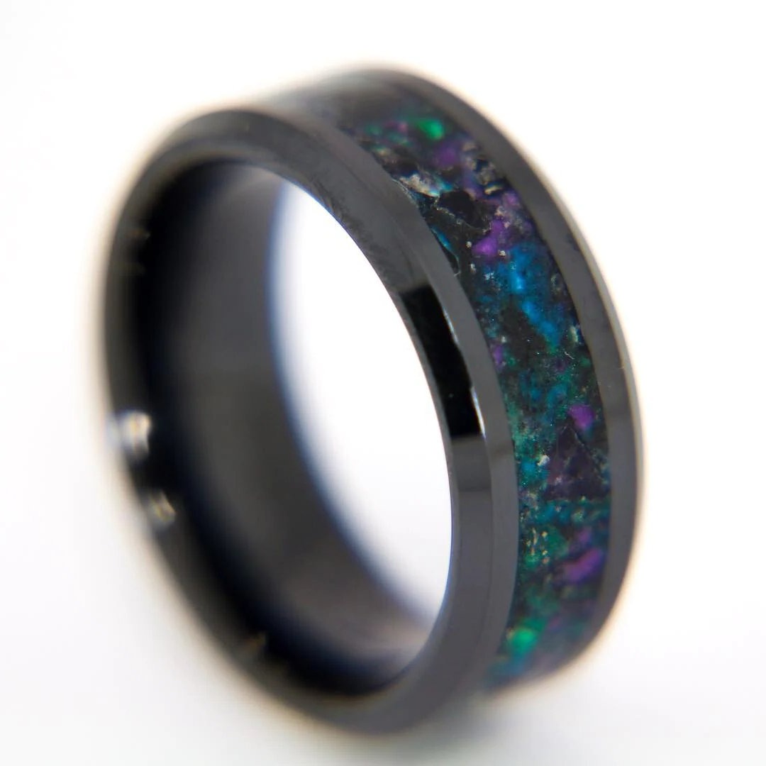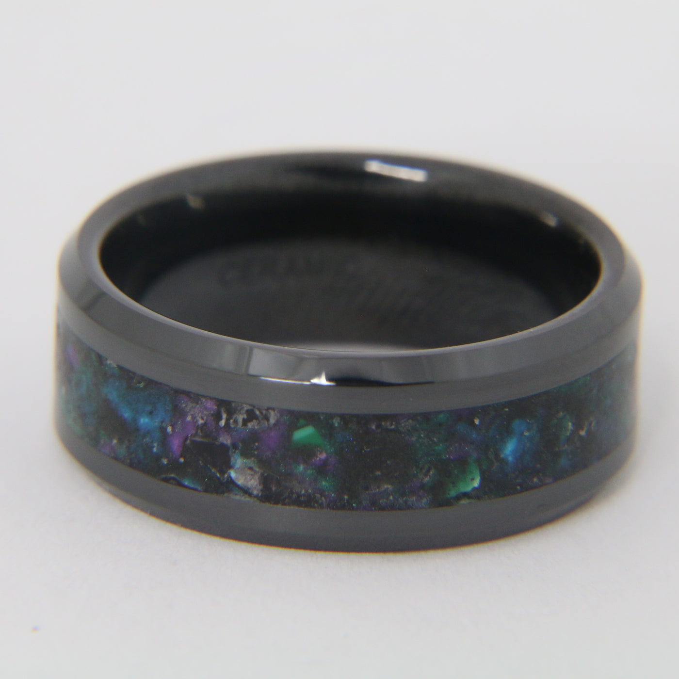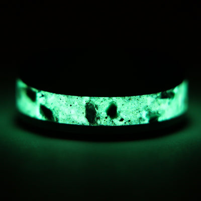 Deep Space Black Ceramic Glowstone Cremation Ring with Ashes