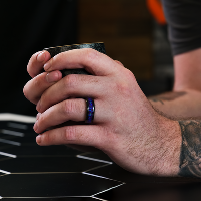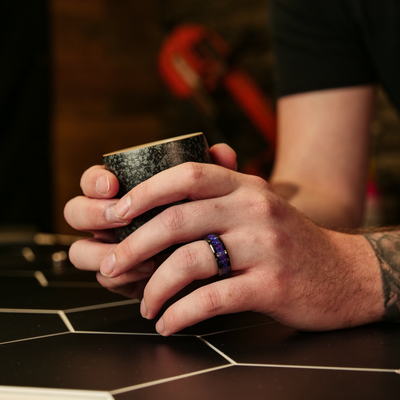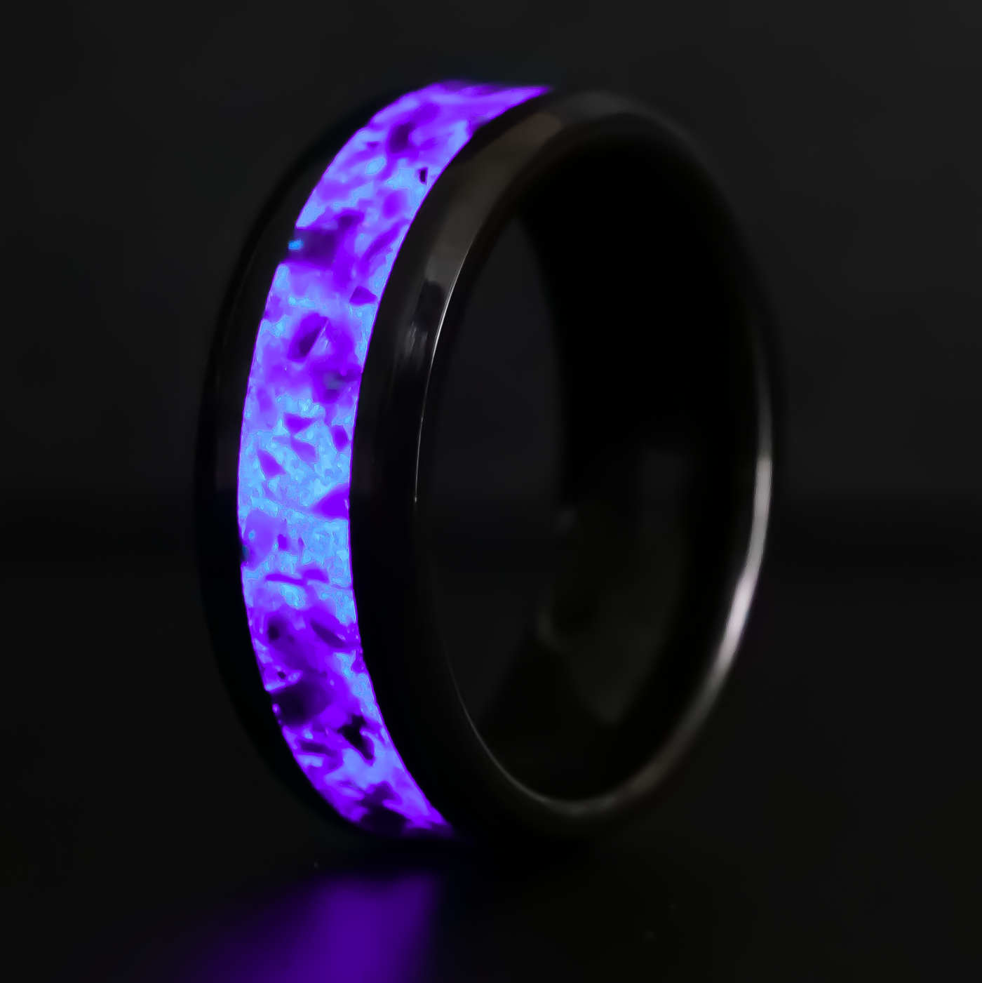 I had a hard time deciding on which width size to get, especially because most of the photos depicted the larger width, but I ultimately decided on the 6mm and I’m glad I did. The titanium works brilliantly with the choices I made in colors and I’m happy I went with that metal. It’s light and doesn’t feel like I have anything on my finger. Initially I thought that I may have forgotten to add the glowstone color, but once I realized that it needs UV light to “activate” the glow, I was pleasantly surprised by how bright it gets, even with the darker daytime colors. The personalization is beautifully engraved and is easy to read. I am also impressed with how quickly this process was. I ordered it on 12/28, and even though I needed the ring sizer and kit sent to me, I had the ring on my finger on 2/8. I’m already looking at what I want to order next.